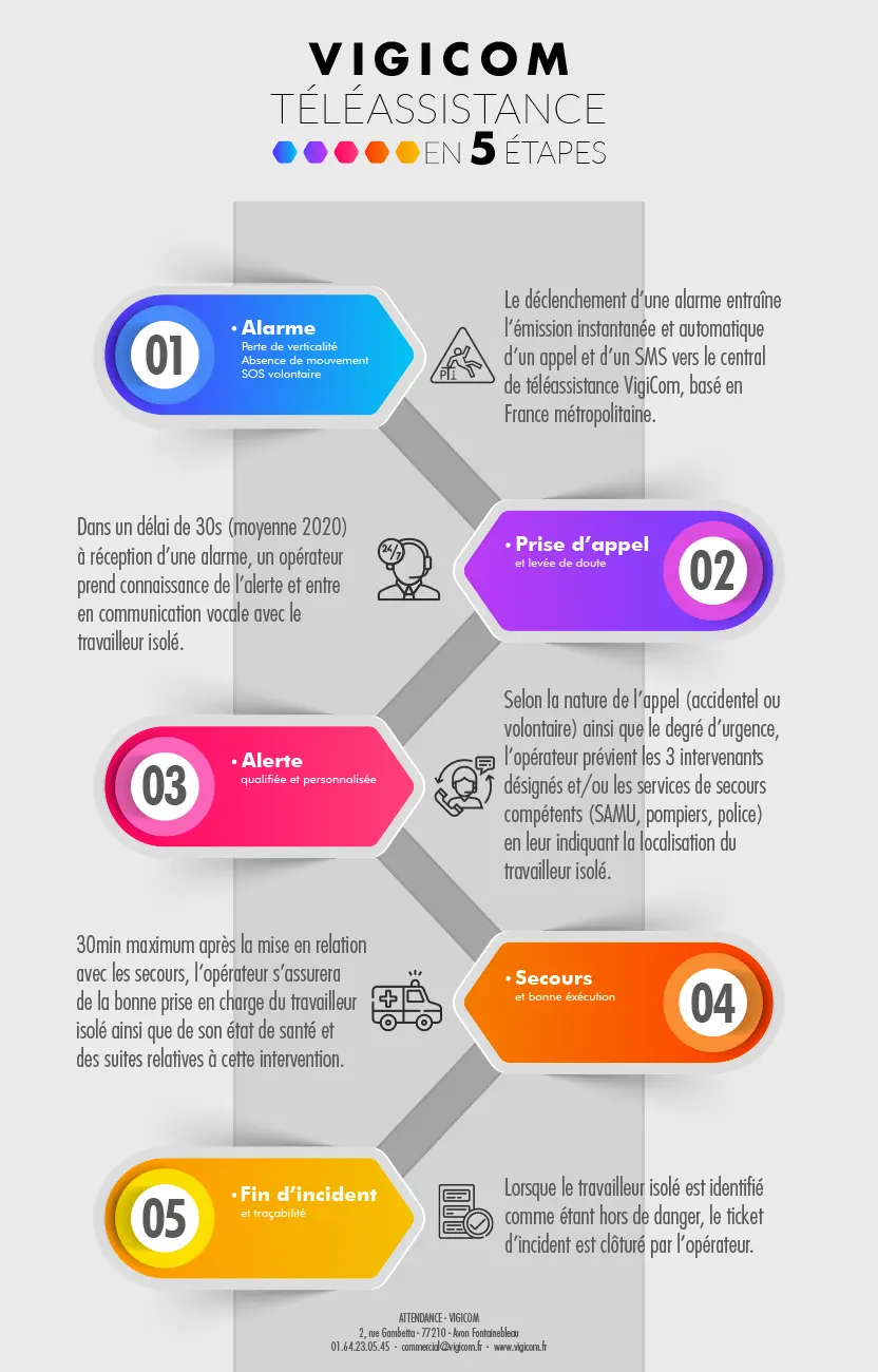 > Une prise en charge immédiate de chaque alerte, quel que soit le niveau de gravité ou le type de risque, pour une sécurité optimale de vos collaborateurs isolés.